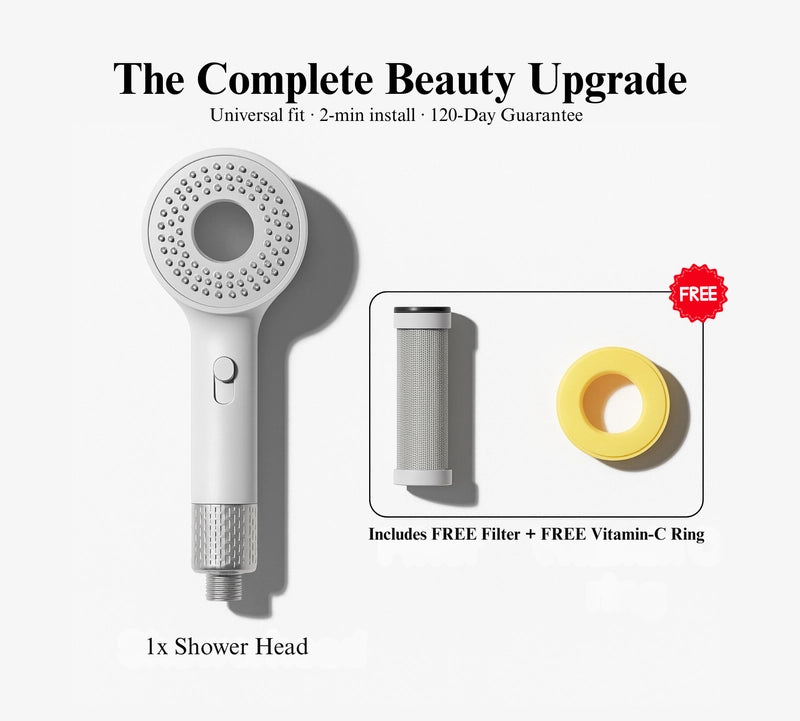 Each shower head comes with a FREE filter + FREE Vitamin-C ring, so you feel the difference from your very first shower.